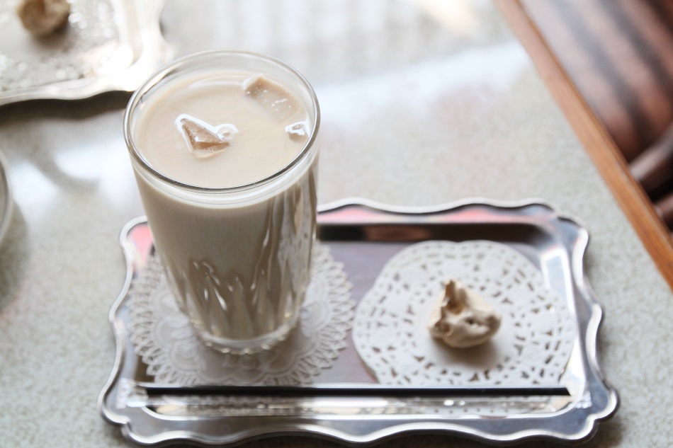 如果是喜歡糖度可選擇的冰友們,個人就比較不建議點選,因為這裡的鮮奶茶糖度是老闆堅持的固定比例,但喝起來不會太甜、約為微糖的口感,奶香味濃郁香醇,但搭配的蛋白餅個人認為味道偏甜,整體暢飲到最後反而會有點膩口的味道,如可以搭配餅乾類個人認為會加分許多