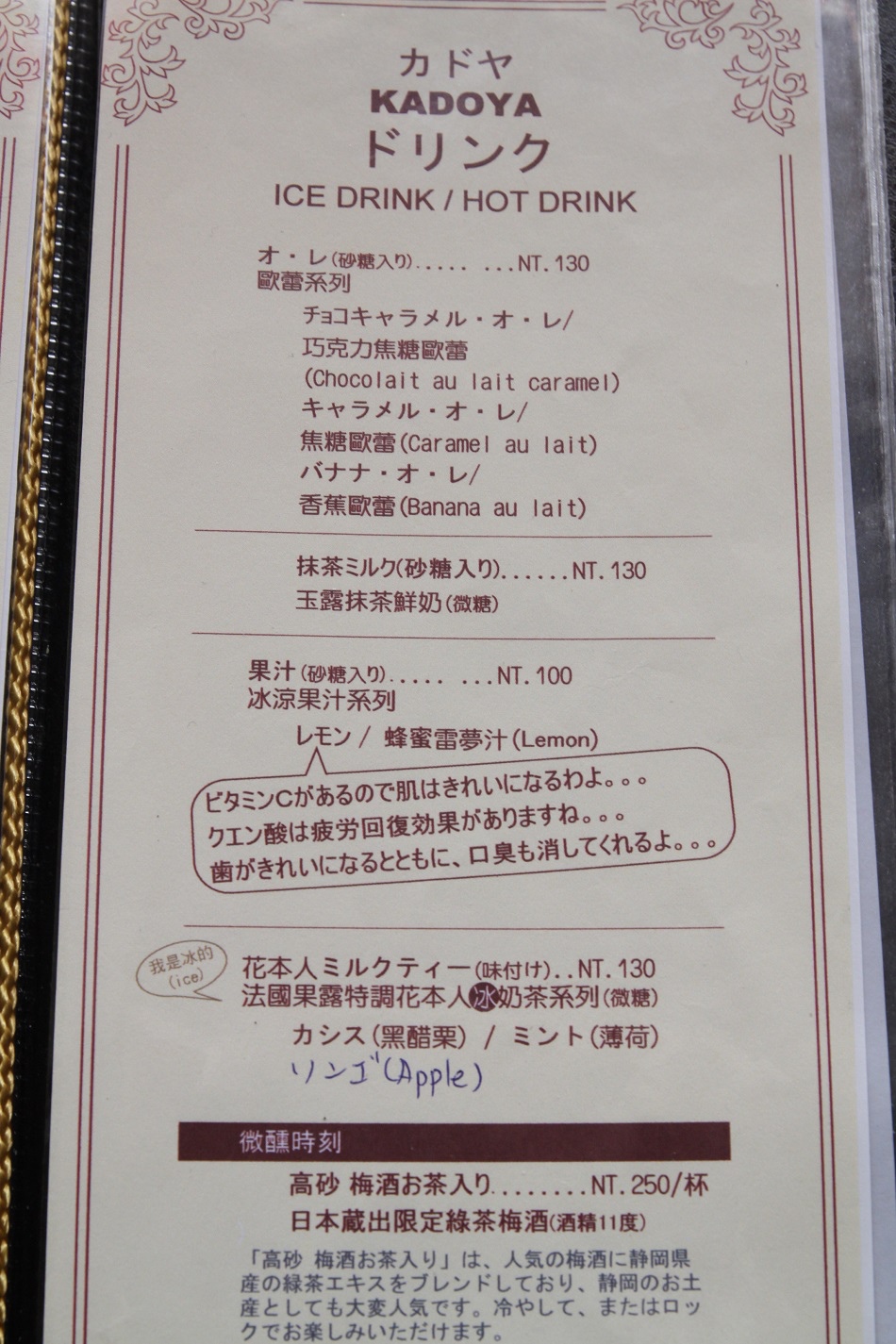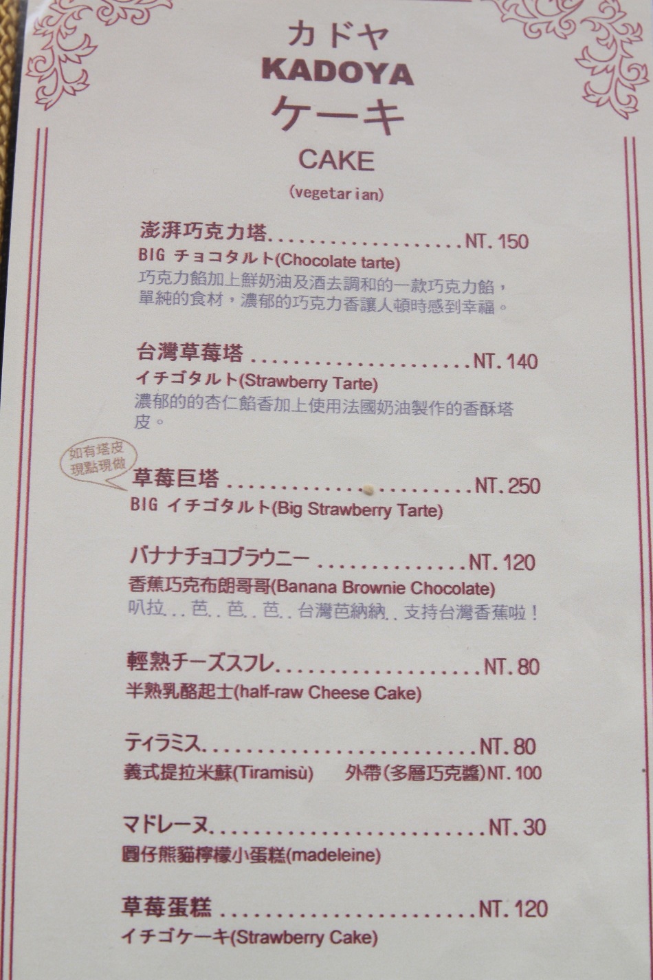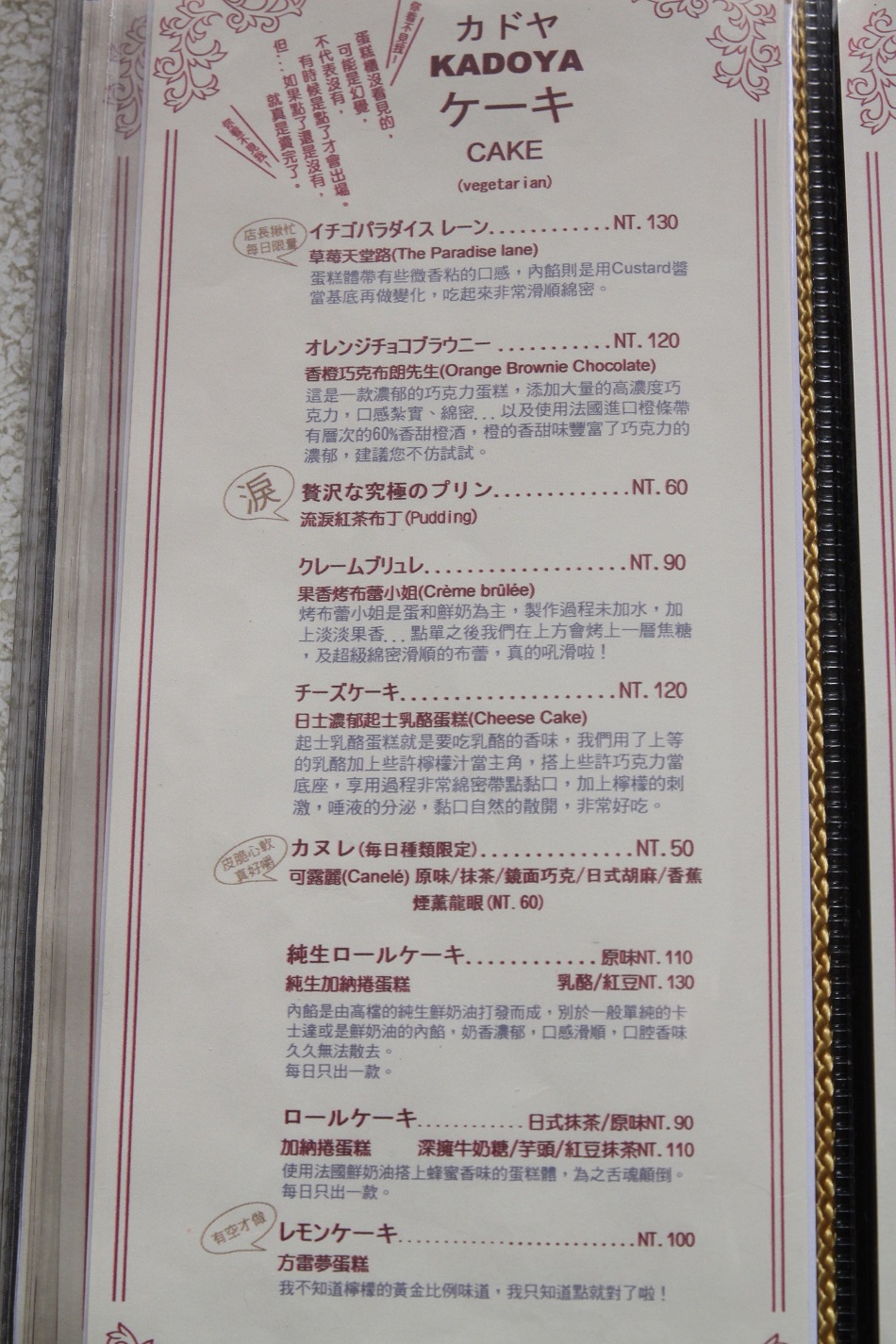 吳老闆曾到日本唸書學藝,進入少林式的廚房之後其日後製作食材的功力深淺,端看個人手藝了,Menu提供的種類從少女的酥胸馬卡龍、海綿蛋糕、甜塔、布丁、洋菓子到近來頗夯的可露麗都有。