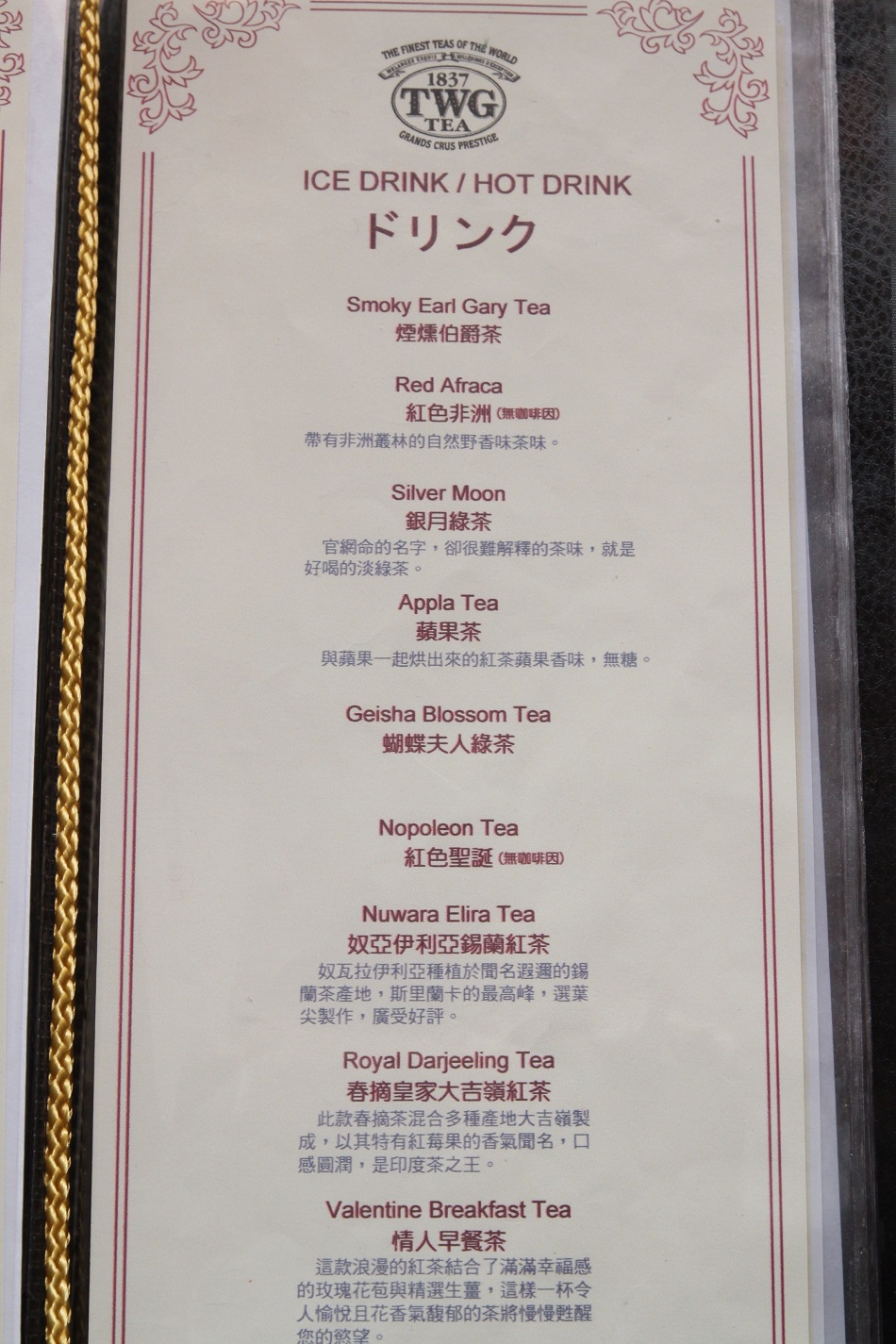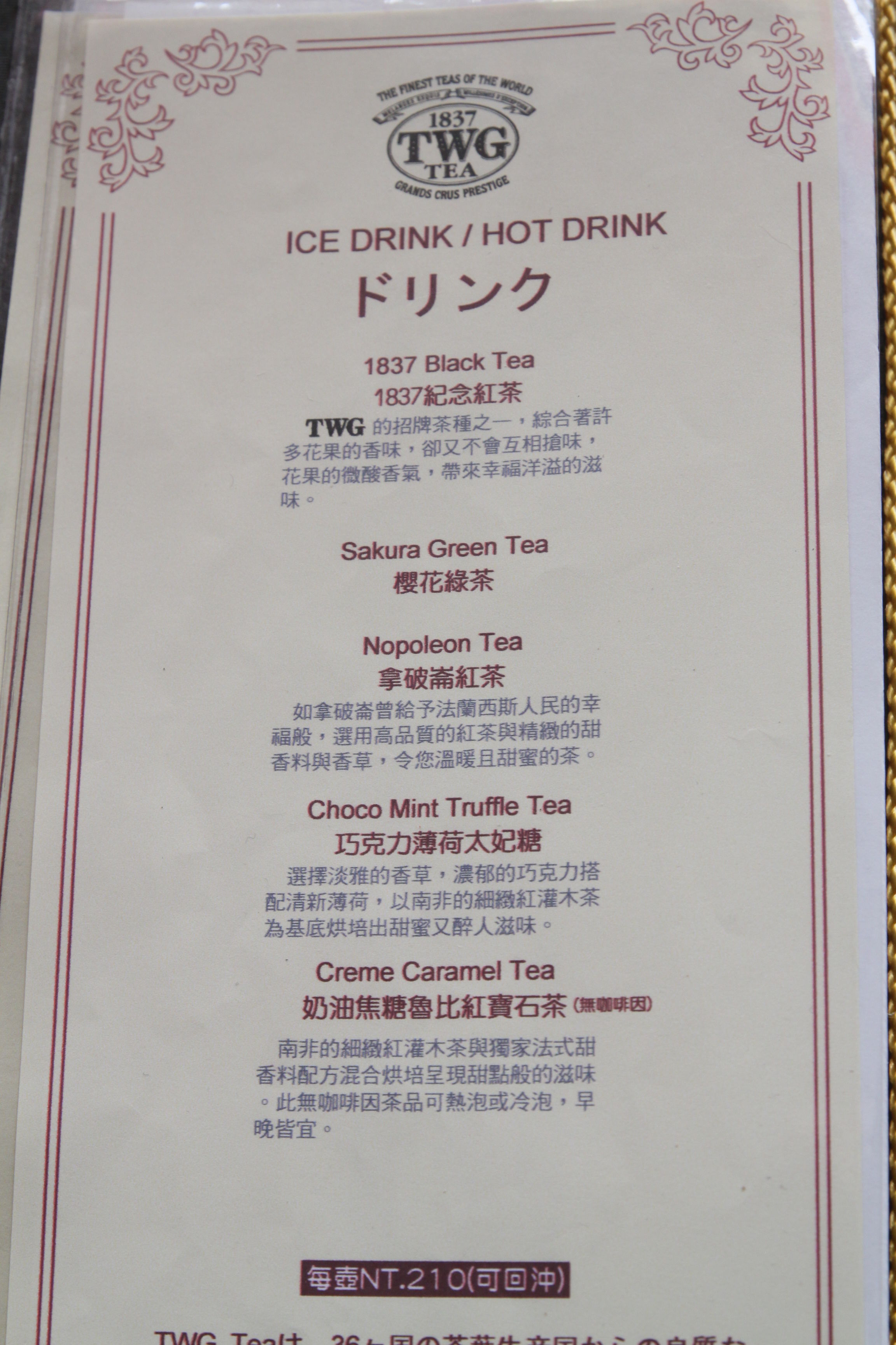 茶飲系列以TWG系列的各類茶點為首、也提供奶茶跟咖啡系列的飲品供人客選擇