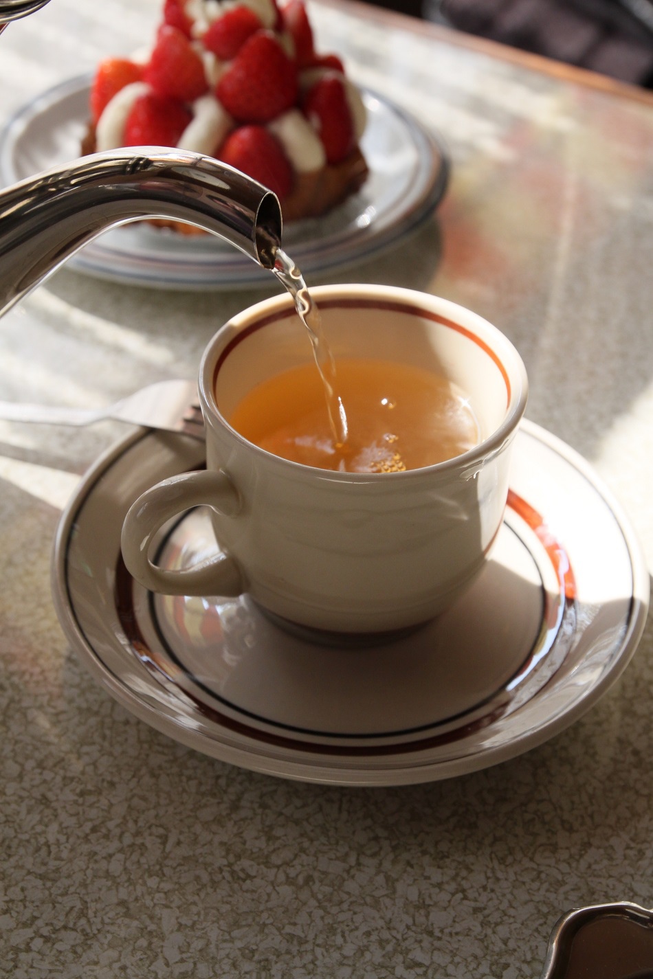 點完不久餐點便一一上桌,這時店內人數已經不少,不太好擷取照片的狀況下也只好先回到座位,先來說說甜點跟茶類的表現,店內蛋糕以海綿蛋糕為主體來呈現作品,甜塔類則是屬於季節限定種類來提供。