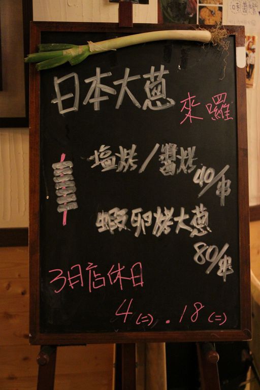 烤雞肉串(焼き鳥)是日式料理中的代表性烤物。一般而言串燒是以幾塊一口大小的肉類或內臟放在竹籤上,再以炭火烤熟食用。而日式燒烤在日本是相當大眾化的居酒屋料理,亦有以地雞食材為主的特色專賣店。這次介紹的是已經造訪過幾次的味道樂串燒酒場(近夏林路x建南路交叉口)。