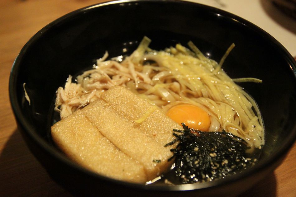 豆皮充份吸飽了湯汁,麵條Q嫩有嚼勁,由於友人跟我都是蛋蛋控的關係,把蛋黃攪拌再食用更是美味非常,但如果是不喜歡有生蛋黃的朋友就比較不建議點選。